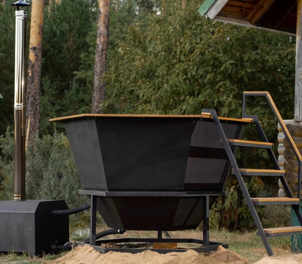 Баня или чан подключаются к электричеству и воде. Мы предоставляем схему подключения и при необходимости выполняем подключение на участке.